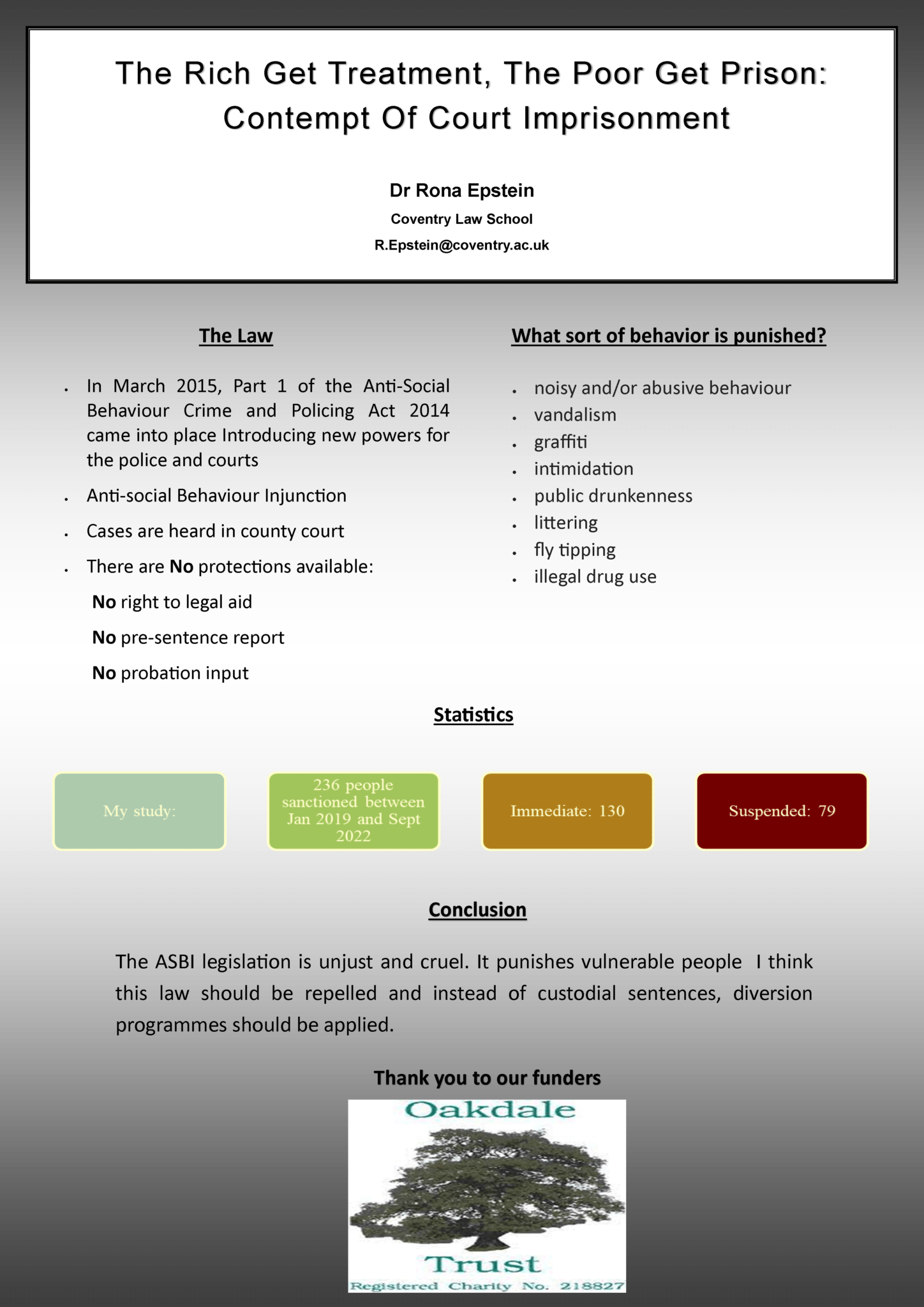 - The Rich Get Treatment, The Poor Get Prison: Contempt Of Court Imprisonment, Dr Rona Epstein, Coventry Law School (Download PDF)